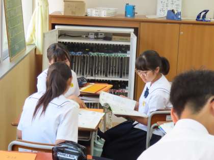 6月20日(木)1年生「授業の様子」 公開日 2024/06/20 更新日 2024/06/20 1年生 2時間目の様子です。 (写真上)1組英語「Unit4の会話を覚えよう」 (写真下)2組保体「バレーボール」
