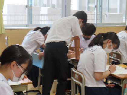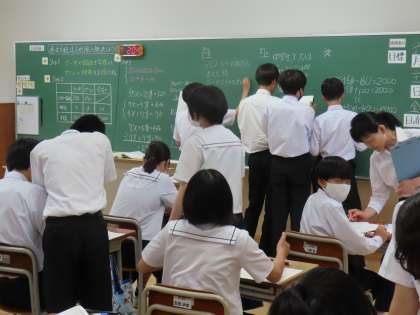 6月21日(金)2年生「授業の様子」 公開日 2024/06/21 更新日 2024/06/22 2年生 1組の3時間目は教育実習生の公開授業。 学習課題は「連立方程式を利用して解決しよう」です。 文章で表された問題を読み取って連立方程式をつくるステップを、例題で学び、実際の問題を解くことでそれを確認していました。