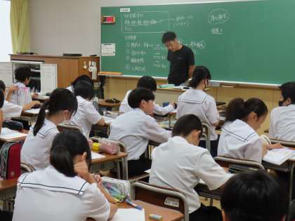 (写真下)2組保体「生活習慣の変化と運動・食事・休養・睡眠の調和について学ぼう」