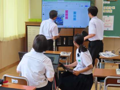 6月25日(火)2年生「授業の様子」 公開日 2024/06/25 更新日 2024/06/25 2年生 3時間目の授業です。 (写真上)1組美術「作品から共通点や相違点を見つけ出し、文化と影響について考えよう」 (写真中)2組数学「連立方程式を利用して解決しよう」 (写真下)3組英語