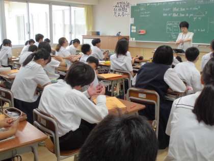 (写真上)1組英語「「何時に〜しますか」を使って対話しよう」