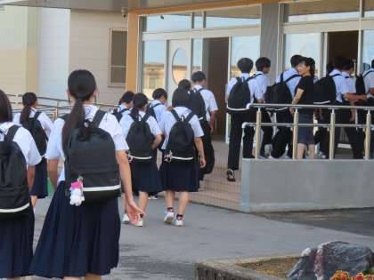期末考査最終日。教科書を手に登校する生徒もちらほら。