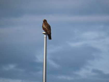 トンビが掲揚塔で休憩しています。