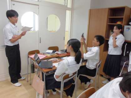 (写真上)1組国語「聞き手にとって分かりやすく魅力的なスピーチになるように、スピーチの構成を考え直そう」