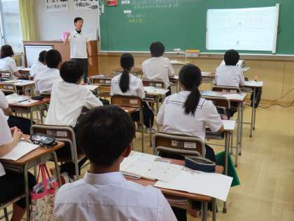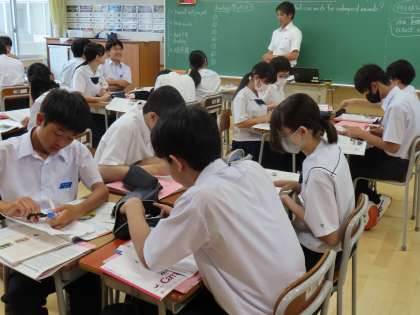 7月9日(火)3年生「授業の様子」 公開日 2024/07/09 更新日 2024/07/10 3年生 5時間目になりました。 (写真上)1組社会「グローバル化によって世界にどのような変化が見られたか」 (写真中)2組英語「絶滅しそうな動物たちのために何ができるのか伝え合おう」 (写真下)3組保体「バレーボール」