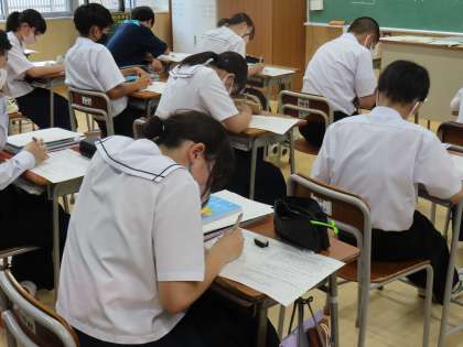 7月9日(火)2年生「授業の様子」 公開日 2024/07/09 更新日 2024/07/09 2年生 5時間目の様子です。 (写真上)1組数学「単元末テスト」 (写真中)2組英語「期末考査やり直しプリント」 (写真下)3組国語「次のテストに向けて、テスト問題に挑戦」
