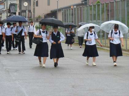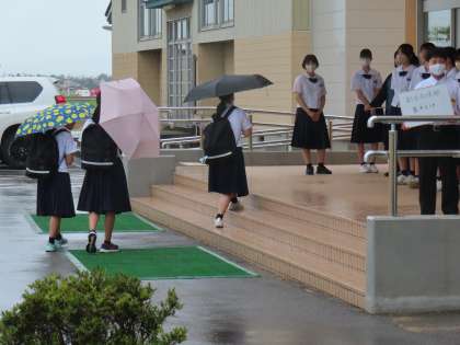 7月10日(水)「登校風景」 公開日 2024/07/10 更新日 2024/07/10 学校生活 おはようございます。 今朝も立候補者たちの「おねがいしまーす」の声が生徒玄関に響きます。 今日もよろしくお願いします。