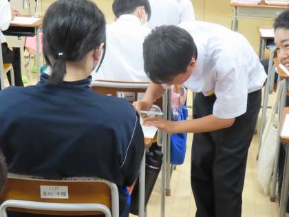 (写真下)2組社会「アジア州の人口や文化、農業はどのような特徴があるのだろう」