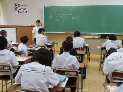 (写真上)1組数学「分配法則を使って文字の計算をしよう」