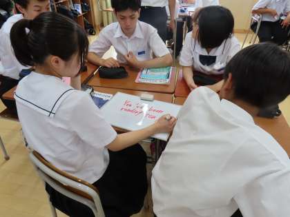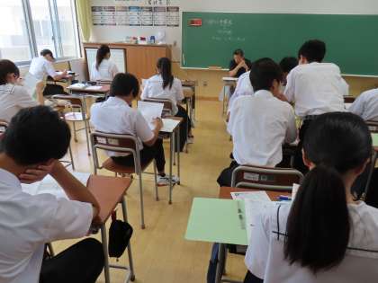 7月11日(木)3年生「授業の様子」 公開日 2024/07/11 更新日 2024/07/12 3年生 5時間目の様子です。 (写真上)1組英語「Road to Dictation Master」 (写真中)2組社会「よりよい合意を得るためにはどうすればよいだろう」 (写真下)3組理科
