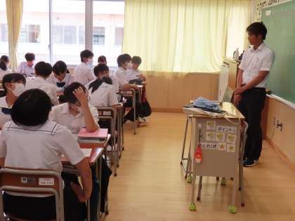 7月16日(火)3年生「授業の様子」 公開日 2024/07/16 更新日 2024/07/16 3年生 5時間目の様子です。 (写真上)1組保体「バレーボール」 (写真中)2組英語「実力テストの作文を直して、文法のおさらいをしよう」 (写真下)3組理科