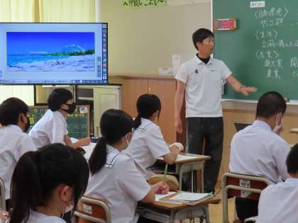 7月16日(火)2年生「授業の様子」 公開日 2024/07/16 更新日 2024/07/17 2年生 5時間目の様子です。 (写真上)1組家庭「ミシンを使おう」 (写真中)2組社会「南西諸島の生活と産業についてまとめよう」 (写真下)3組英語「カードを見て、ひと言どうぞ」
