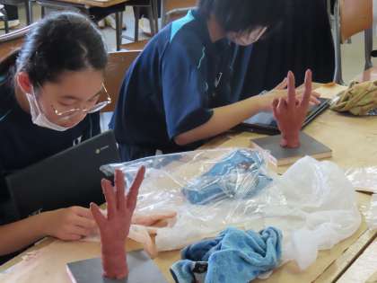 7月17日(水)1年生「授業の様子」 公開日 2024/07/17 更新日 2024/07/18 1年生 2時間目の様子です。 (写真上)1組家庭「魚の種類と調理について調べよう」 (写真中) 〃 (写真下)2組美術「本物と同じ長さ、厚さにしよう」