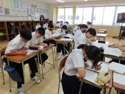 7月18日(木)2年生「授業の様子」 公開日 2024/07/18 更新日 2024/07/18 2年生 2時間目の授業です。 (写真上)1組理科 (写真中)2組国語「短歌の鑑賞をしよう」 (写真下)3組英語「田中さんのアドバイスを読み取ろう」