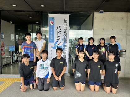8月5日(月)「北信越大会、がんばります!」 公開日 2024/08/05 更新日 2024/08/07 部活動 「バドミントン北信越、生徒全員揃いました! 今日は公式練習、明日団体戦、明後日個人戦です。 がんばります!」