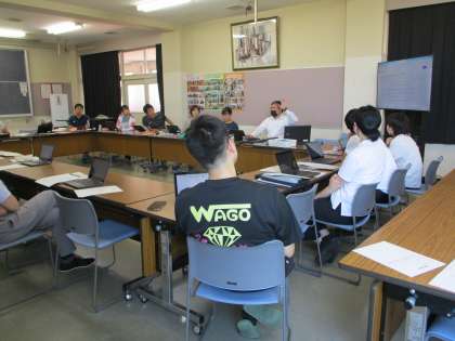 午前に職員研修会を行いました。 今回は「著作権」について、本校教員が講師となり全員で研修しました。