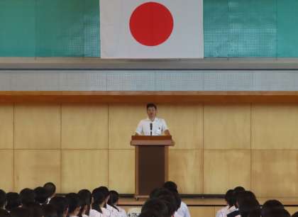 「生徒信条で唱和したように、様々な活動に『心を合わせてめあてに向かう」2学期にしてください。」