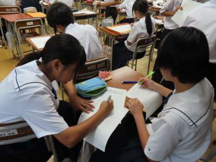 (写真上)1組英語「英語の語順に気を付けて作文しよう」