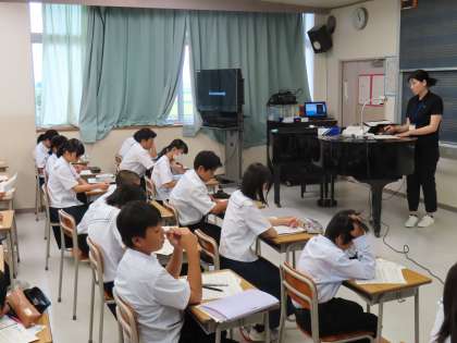 (写真下)2組音楽「自分のパートの旋律を覚えよう」