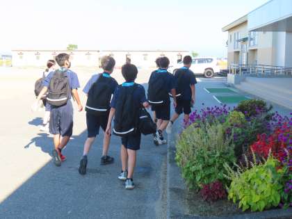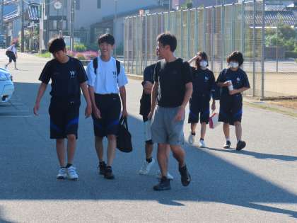 9月10日(火)「登校風景」 公開日 2024/09/10 更新日 2024/09/10 学校生活 おはようございます。 快晴。今日は暑い一日になりそうです。 生徒たちは体育服で登校しています。 今日もよろしくお願いします。