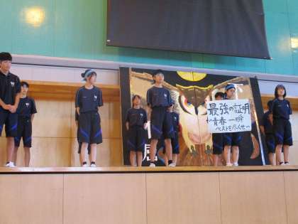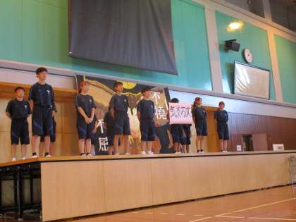 9月9日(月)運動会「結団式」その2 公開日 2024/09/10 更新日 2024/09/10 学校生活 各団の団役員が豊富を述べます。 (写真上)赤・・・紅焔(こうえん)団 (写真中)青・・・蒼海(そうかい)団 (写真下)黄・・・霽月(せいげつ)団