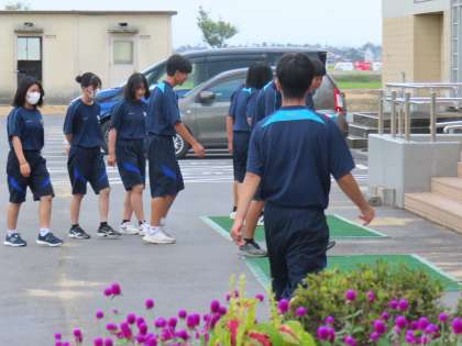 9月17日(火)「登校風景」 公開日 2024/09/17 更新日 2024/09/17 学校生活 おはようございます。 微かに雨が降っています。 今日もリーダーたちが運動会の練習の準備をしています。 今週もよろしくお願いします。