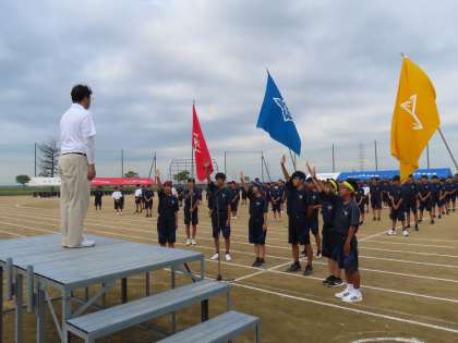 9月18日(水)「第78回運動会」その1 公開日 2024/09/18 更新日 2024/09/18 学校生活 いよいよ運動会が始まります。 開会式では実行副委員長による開会の言葉に続き、各団の団長が力強く選手宣誓を行いました。