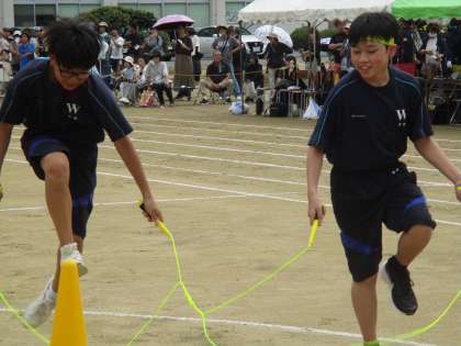 9月18日(水)「第78回運動会」その12 公開日 2024/09/18 更新日 2024/09/18 学校生活 2年生の学年種目「Jumping でかでか Twinkle」 でかパンとなわとびの2人組が交互にリレーする楽しい種目です。