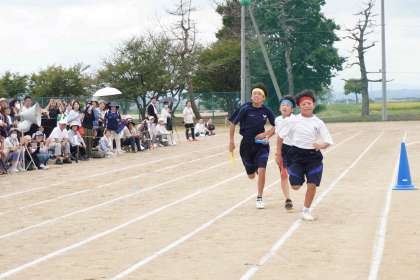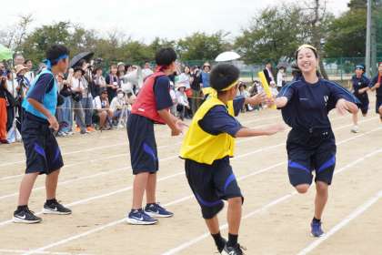 女子は1走、3走で100m、男子は2走、4走で200m走ります。