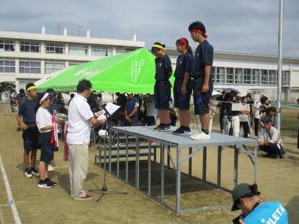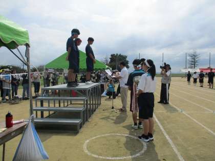 9月18日(水)「第78回運動会」その28 公開日 2024/09/19 更新日 2024/09/19 学校生活 成績発表 競技の部 1位:紅焔団 、2位:蒼海団 団パフォーマンスの部 最優秀賞:紅焔団 優秀賞:霽月団
