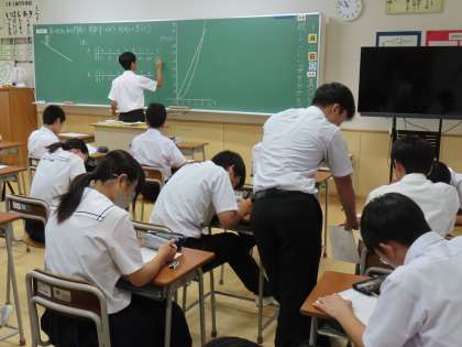 9月21日(土)3年生「授業の様子」 公開日 2024/09/21 更新日 2024/09/21 3年生 3時間目は授業参観です。、 (写真上)1組美術「混色によって明暗を表現しよう」 (写真中)2組社会「日本国憲法は平等権をどのように保障しているのだろう」 (写真下)3組数学「身の回りの問題を、関数y=ax^2を利用してで考えよう」