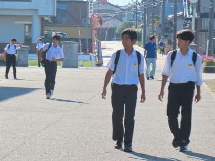 9月25日(水)「登校風景」 公開日 2024/09/25 更新日 2024/09/25 学校生活 おはようございます。 秋晴れの朝です。 ここ数日で、ずいぶん過ごしやすくなりました。 空高くに下弦の月が残っています。 今日もよろしくお願いします。