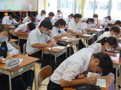 (写真上)1組社会「政治に私たちの願いを反映させるために、私たちはどうすればいいのか」