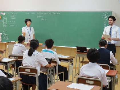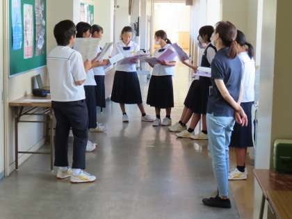 (写真上)1組英語「スピーチから分かったことを情報交換しよう」