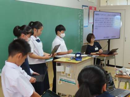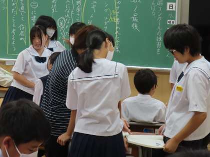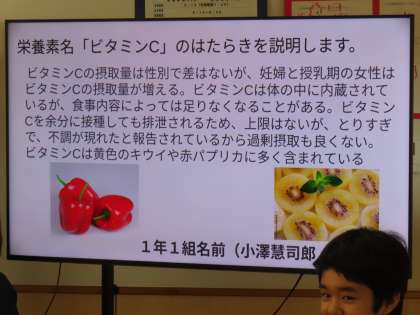 10月2日(水)1年生「授業の様子」 公開日 2024/10/02 更新日 2024/10/02 1年生 今日の2時間目の授業は・・・ (写真上)1組家庭「栄養素について調べたことを発表しよう」 (写真中) 〃 (写真下)2組国語「物語を通して作者が伝えたかったことを考えよう」