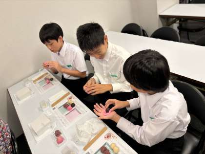 10月3日(木)2年生「金沢校外学習」その14 公開日 2024/10/03 更新日 2024/10/04 2年生 「和菓子作り」体験中 ※2年生は本日金沢で校外学習中。 体験や見学の様子はカテゴリ「2年生」にアップしています。