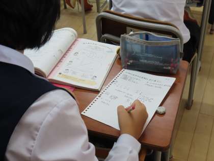 (写真中)2組数学「比例とは何かを理解し、式で表そう」