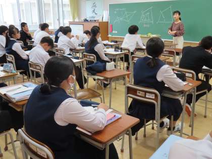 10月22日(火)3年生「授業の様子」 公開日 2024/10/22 更新日 2024/10/22 3年生 4時間目は・・・ (写真上)1組数学「拡大図のかき方を考えよう」 (写真中)2組英語「困っていた2人に救いの手をさしのべたのは誰なのか読み取ろう」 (写真下)3組社会「国会のしくみ」