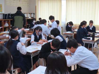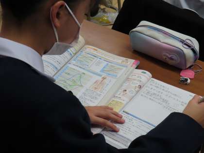 10月29日(火)1年生「授業の様子」 公開日 2024/10/29 更新日 2024/10/29 1年生 3時間目の授業は・・・ (写真上)1組保体「身体の発育・発達」 (写真中) 〃 (写真下)2組数学「反比例について、教科書・ノート・まわりを利用して考え、まとめよう」