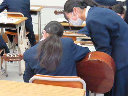 11月11日(月)3年生「授業の様子」 公開日 2024/11/11 更新日 2024/11/11 3年生 2時間目の授業は・・・ (写真上)1組理科「太陽の一日の動きを調べる」 (写真中)2組音楽「ギターを弾いてみよう」 (写真下)3組保体「柔道 〜膝車〜」
