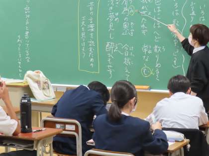11月11日(月)1年生「授業の様子」 公開日 2024/11/11 更新日 2024/11/11 1年生 2時間目の授業は・・・ (写真上)1組数学「速さのグラフはどこに注目すると何が分かるか」 (写真下)2組国語「昔の言葉を読むための工夫を見つけよう」
