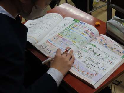 (写真上)1組保体「動きのポイントや名称、ルールについて整理しよう」