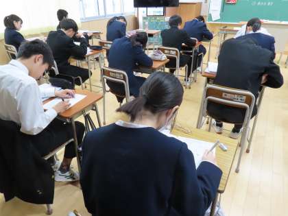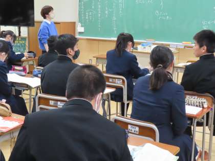 12月4日(水)2年生「授業の様子」 公開日 2024/12/04 更新日 2024/12/04 2年生 3時間目の後半です。 (写真上)1組英語「期末テストを見直し、単元テストでリベンジ!」 (写真中)2組国語「『平家物語』と今の時代、比べてみて感じたことを人に伝えよう」 (写真下)3組家庭「ハーフパンツのすそを三つ折りしてぬおう」