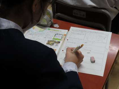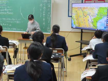 (写真上)1組社会「北アメリカ州に多様な民族が集まったことは、地域にどんな特徴をもたらしただろう」