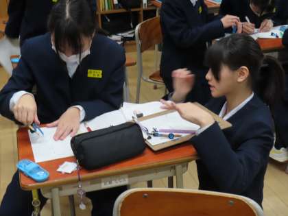 12月13日(金)1年生「授業の様子」 公開日 2024/12/13 更新日 2024/12/15 1年生 2時間目の様子です。 (写真上)1組数学「角の二等分線を作図しよう」 (写真中) 〃 (写真下)2組社会「北アメリカ州では、農産物を大量に生産・輸出できるのはなぜだろう」