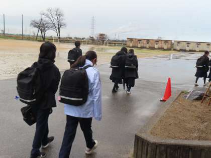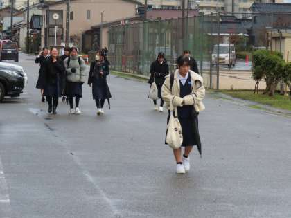 12月16日(月)「登校風景」 公開日 2024/12/16 更新日 2024/12/17 学校生活 おはようございます。 日の出が遅くなり、まだ薄暗い朝。 冷たい雨が降っています。 遠くの煙突からの蒸気は陸から海へと流れています。 今週もよろしくお願いします。