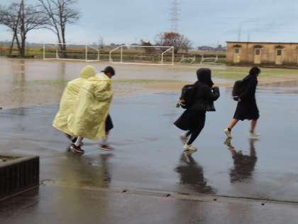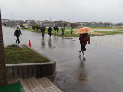 12月17日(火)「登校風景」 公開日 2024/12/17 更新日 2024/12/18 学校生活 おはようございます。 どんよりとした雲、冷たい雨。 生徒たちが駆け込んできます。 日増しに寒さがつのっています。朝はつらいですが、早めに支度して登校しなければ、ですね。 今日もよろしくお願いします。