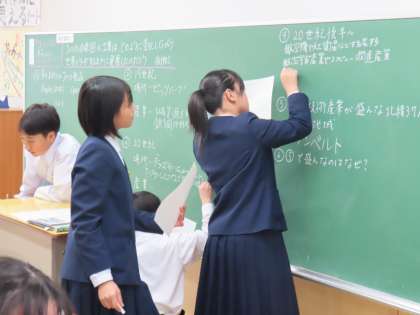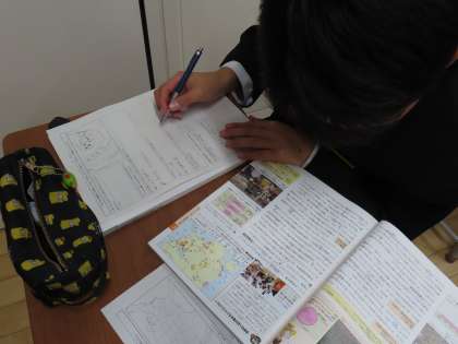 12月17日(火)1年生「授業の様子」 公開日 2024/12/17 更新日 2024/12/17 1年生 5時間目の1年生は・・・ (写真上)1組社会「アメリカ合衆国の工業は、どのように変化しながら、世界をリードするまでに発展したのだろう」 (写真中) 〃 (写真下)2組「書き初めで書く文字を練習しよう」