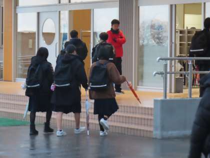12月18日(水)「登校風景」 公開日 2024/12/18 更新日 2024/12/19 学校生活 おはようございます。 8時の今は雨が止んでいるようです。 風は北寄りのようですね。 今日から保護者懇談会がはじまります。 今日もよろしくお願いします。