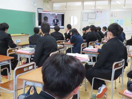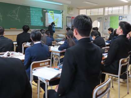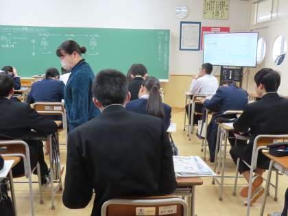 12月19日(木)3年生「授業の様子」 公開日 2024/12/19 更新日 2024/12/19 3年生 3時間目の様子です。 (写真上)1組英語「ライフ・イズ・ビューティフルを鑑賞しよう」 (写真中)2組社会「グローバル化の進行は、私たちの生活にどのような影響を与えているのだろう」 (写真下)3組数学「船の位置を見つけよう」